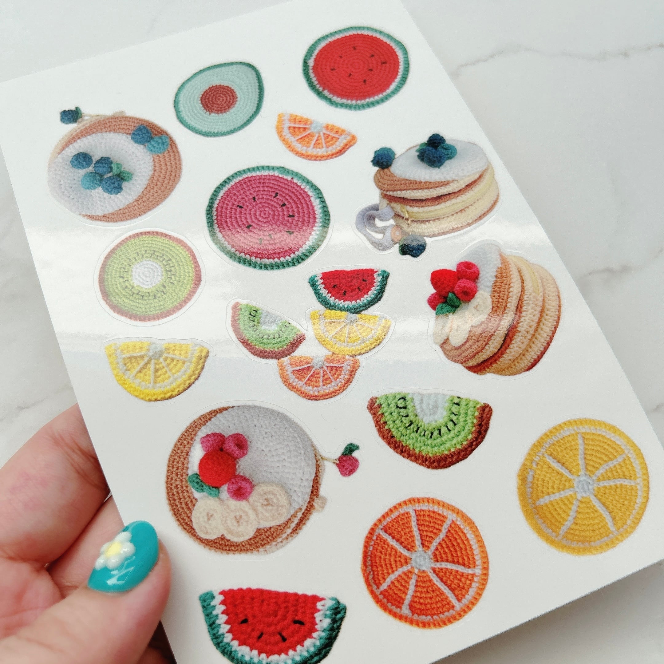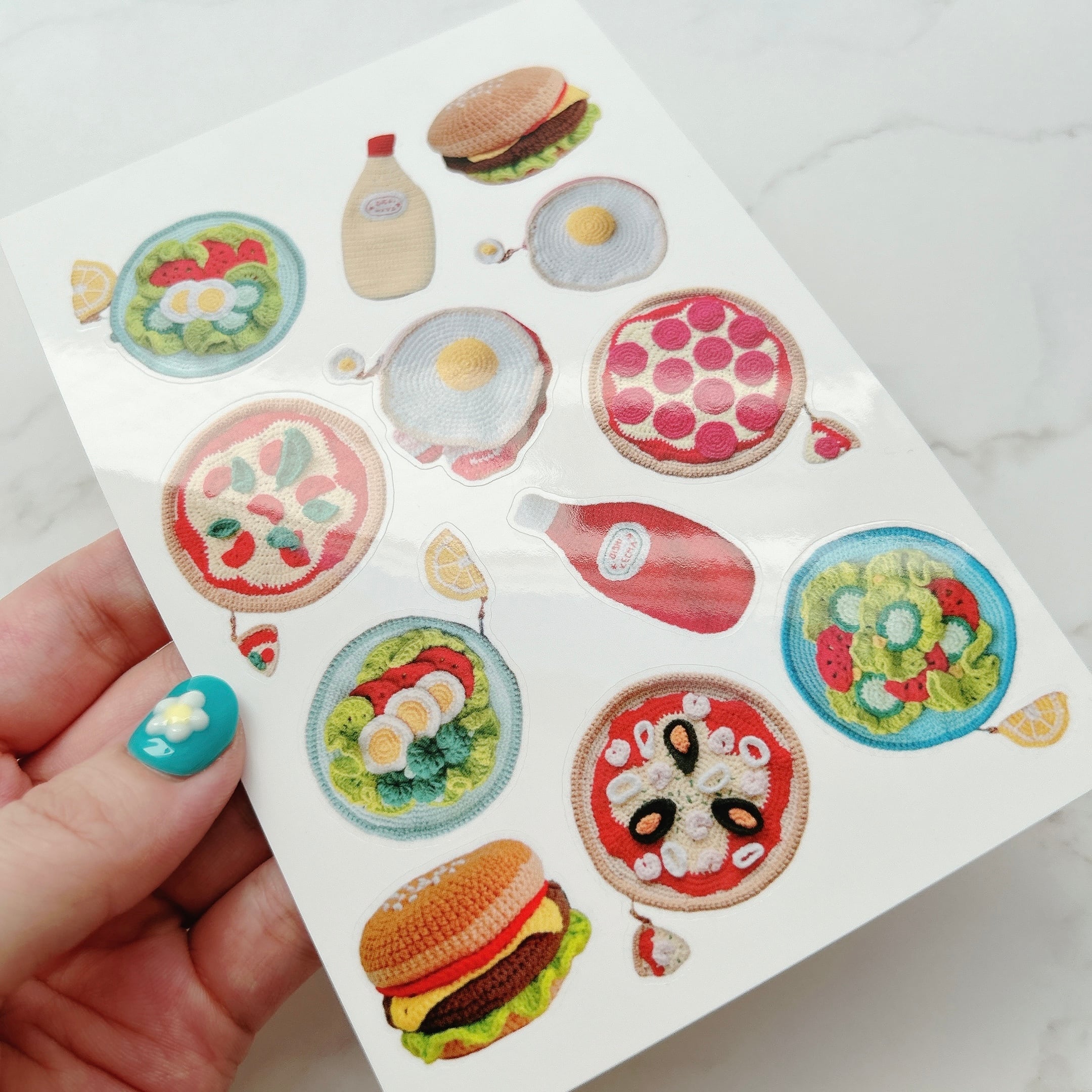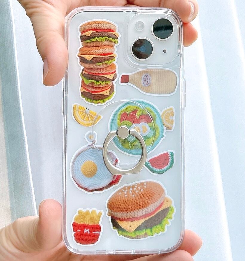 今まで編んだあみぐるみポーチの写真を、シールにしました♡