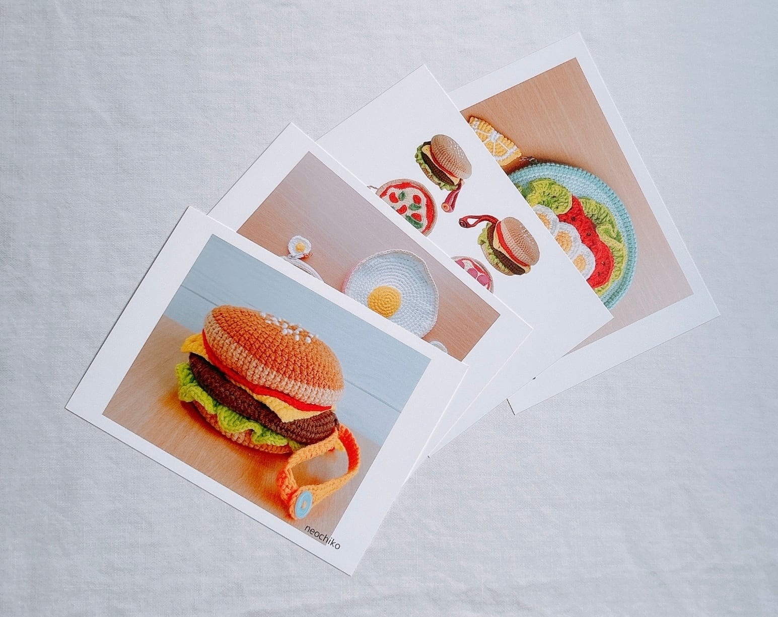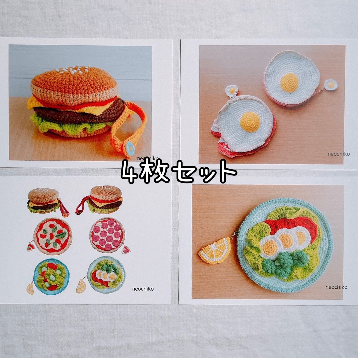 今まで編んだあみぐるみポーチの写真を、ポストカードにしました!
