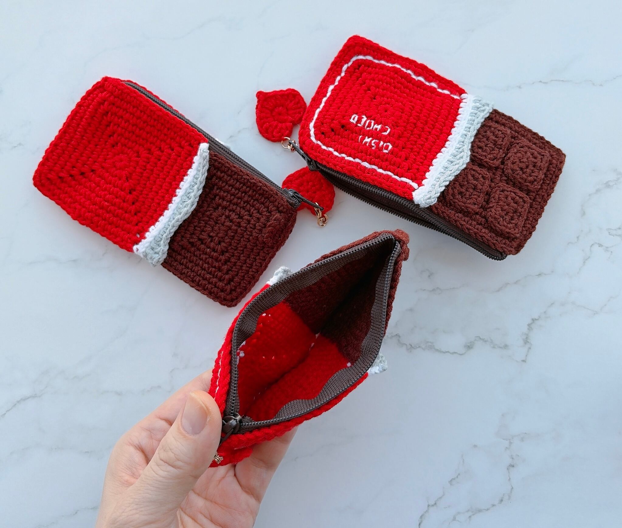かぎ針編みの板チョコをポーチにしました!