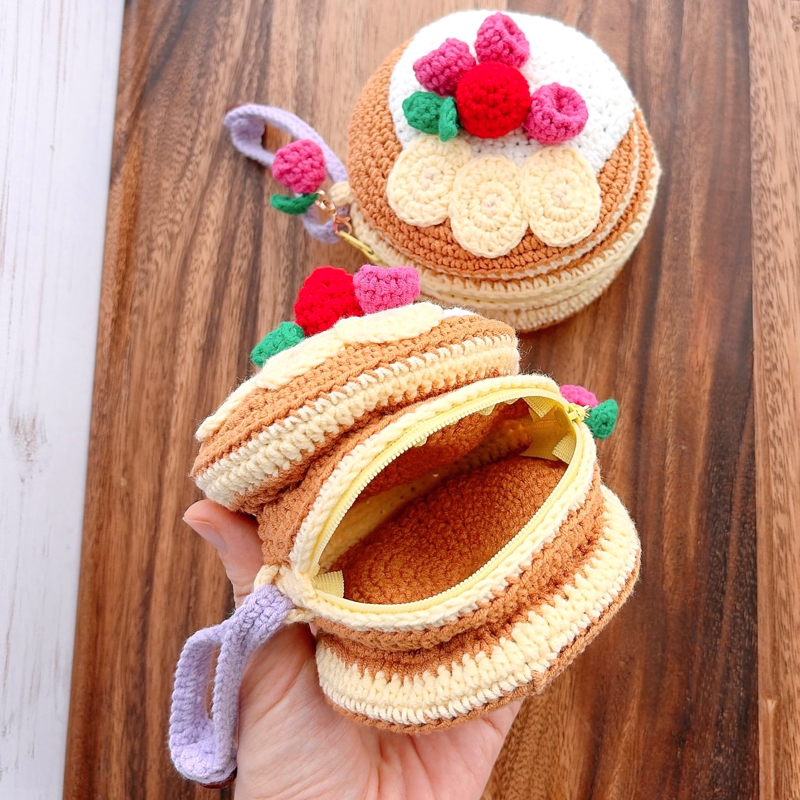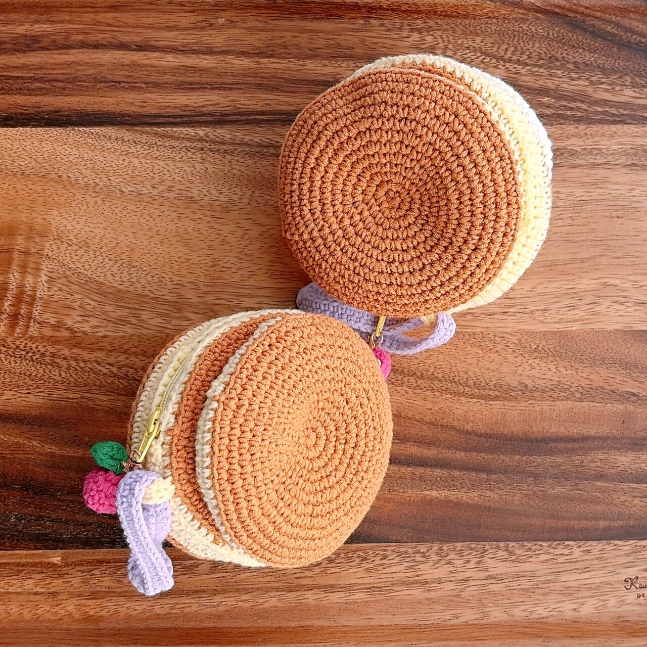 3段のパンケーキのあみぐるみをポーチにしました!