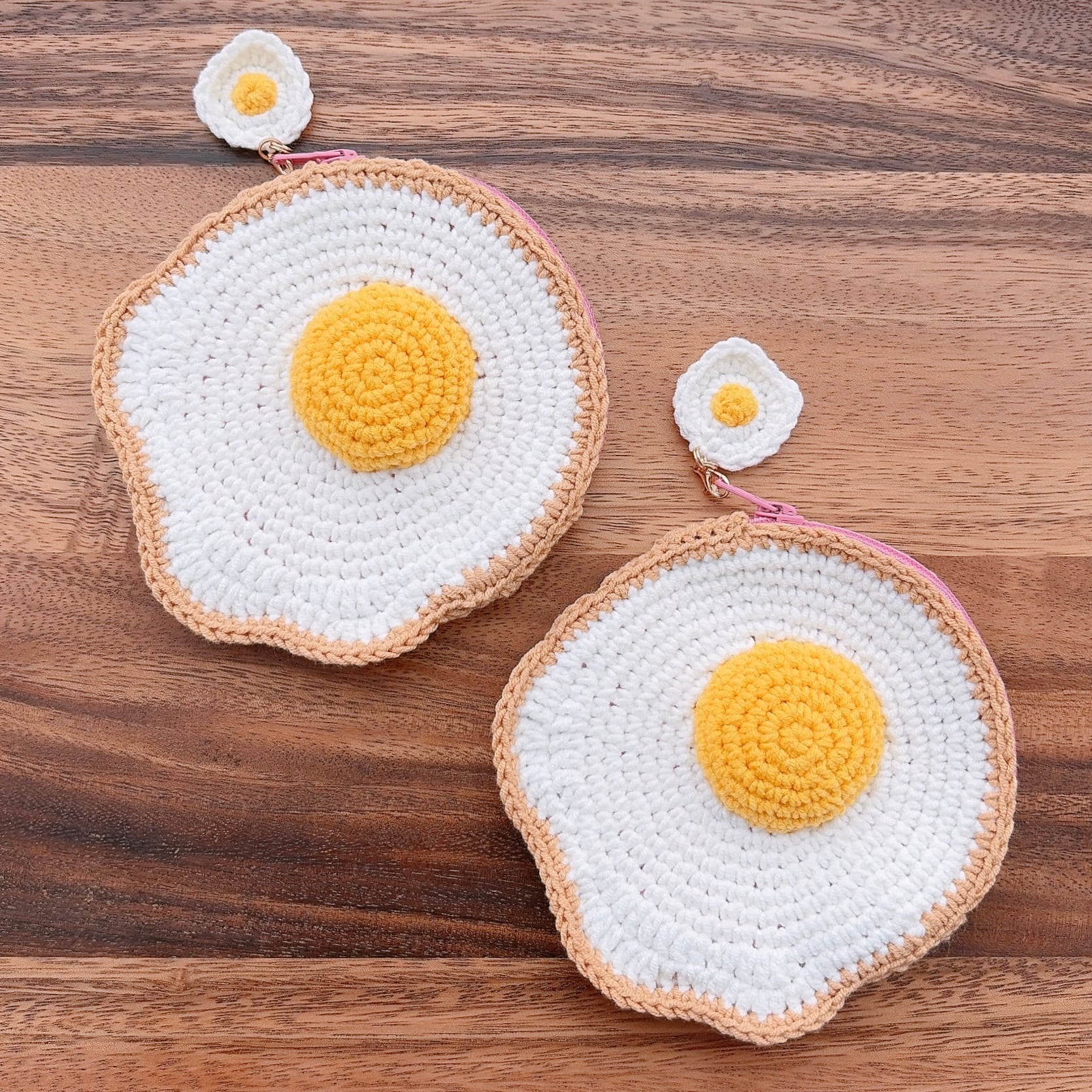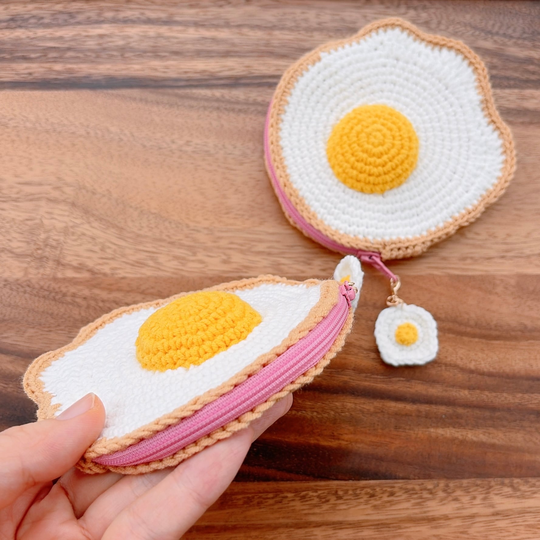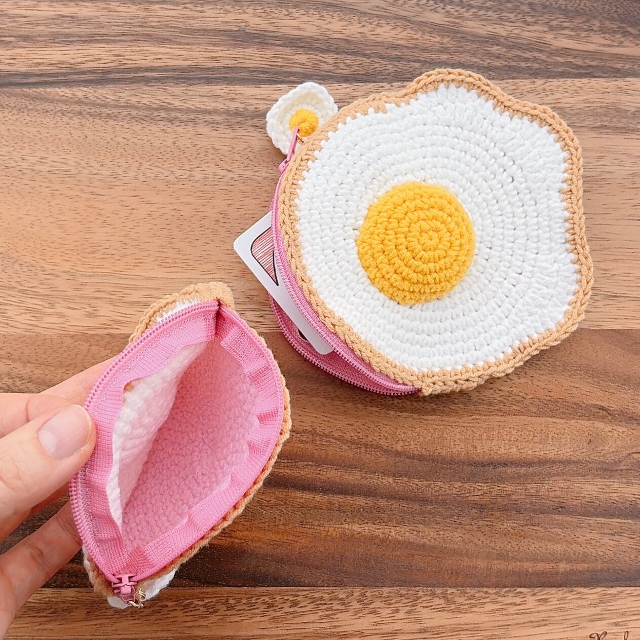 目玉焼きのあみぐるみをポーチにしました!