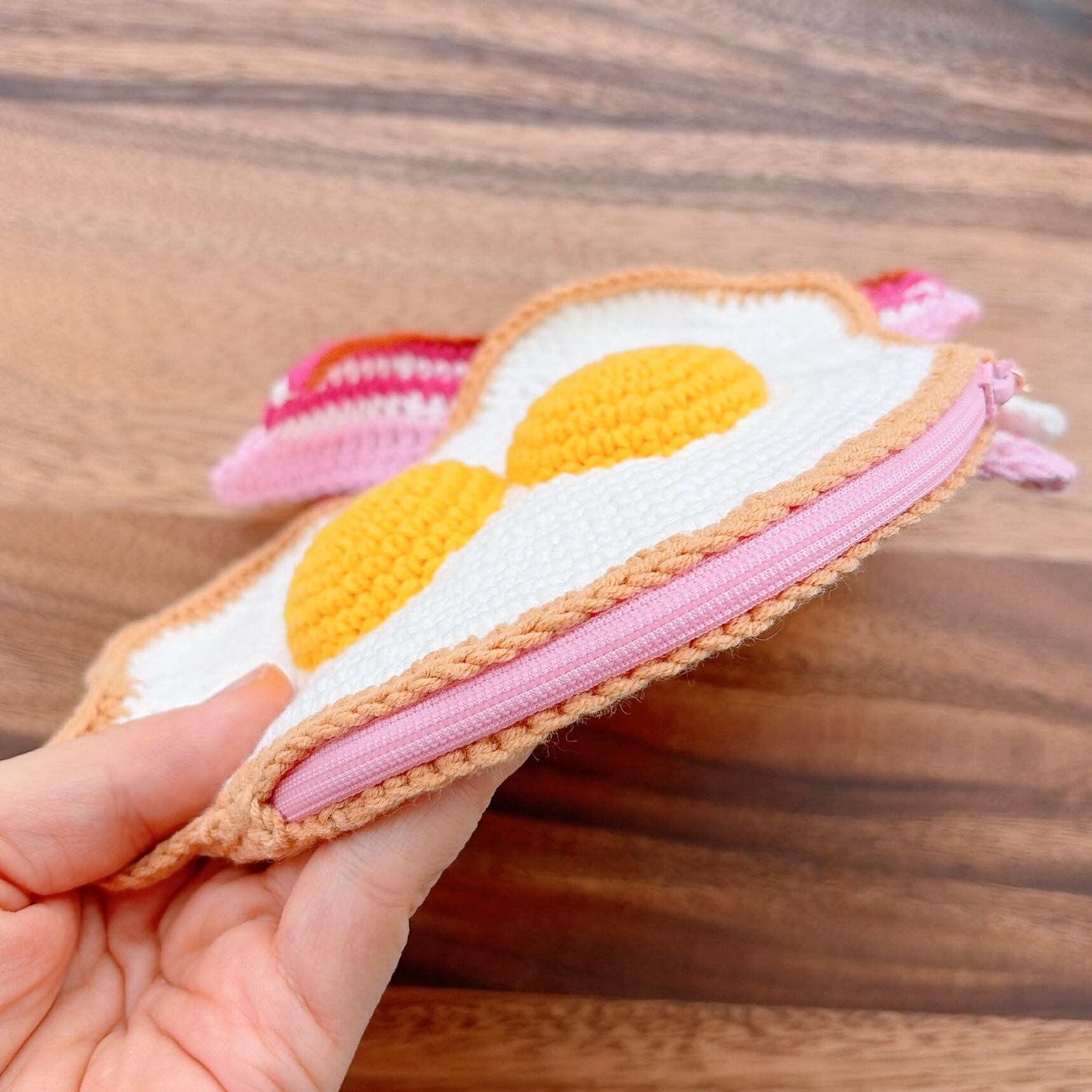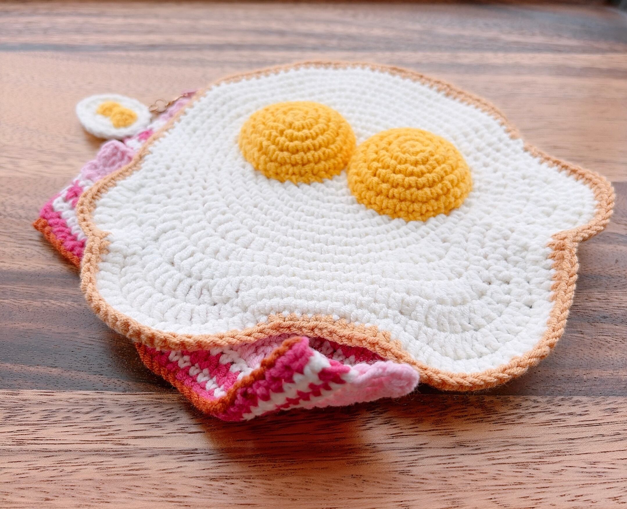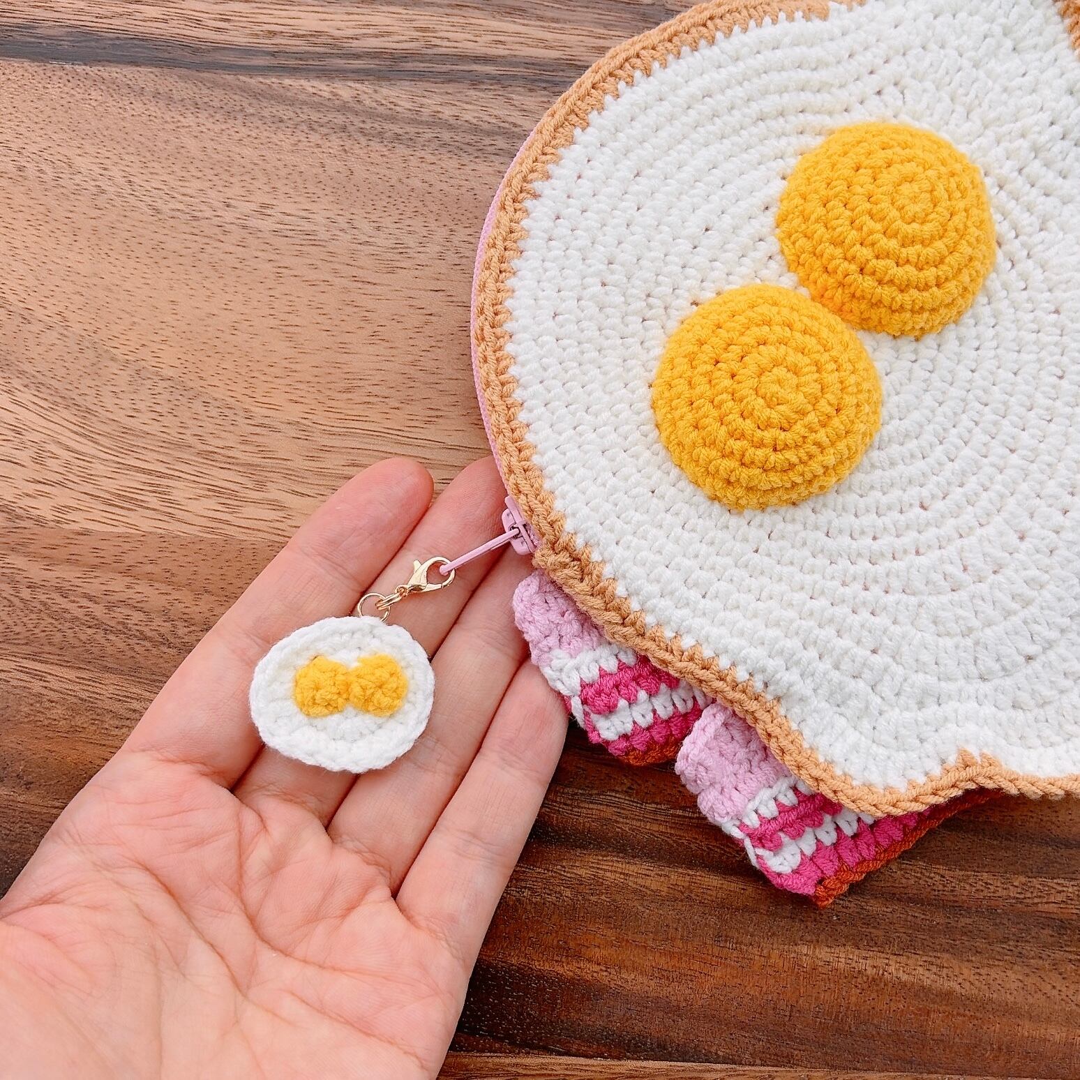 ふたご卵のベーコンエッグ・あみぐるみポーチ