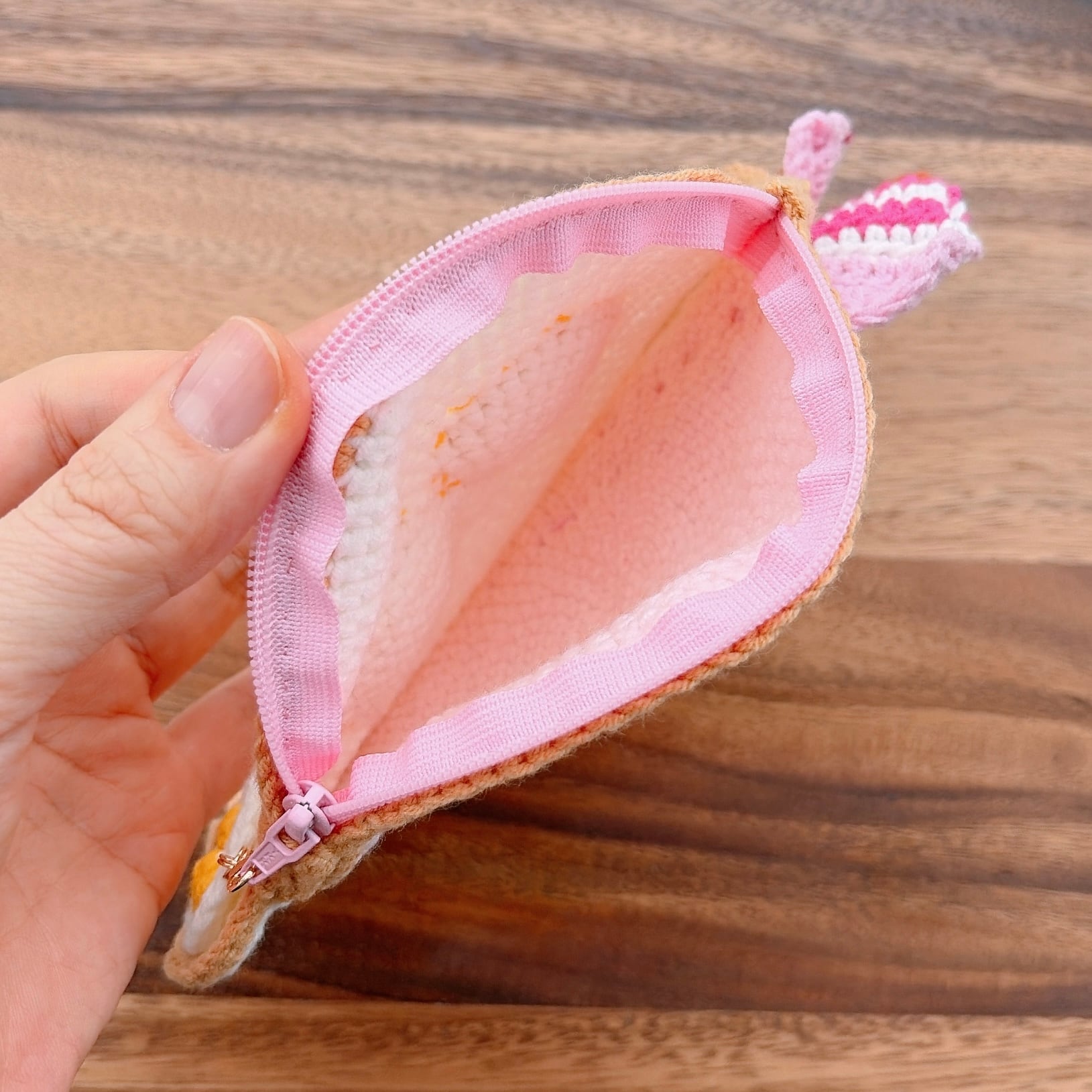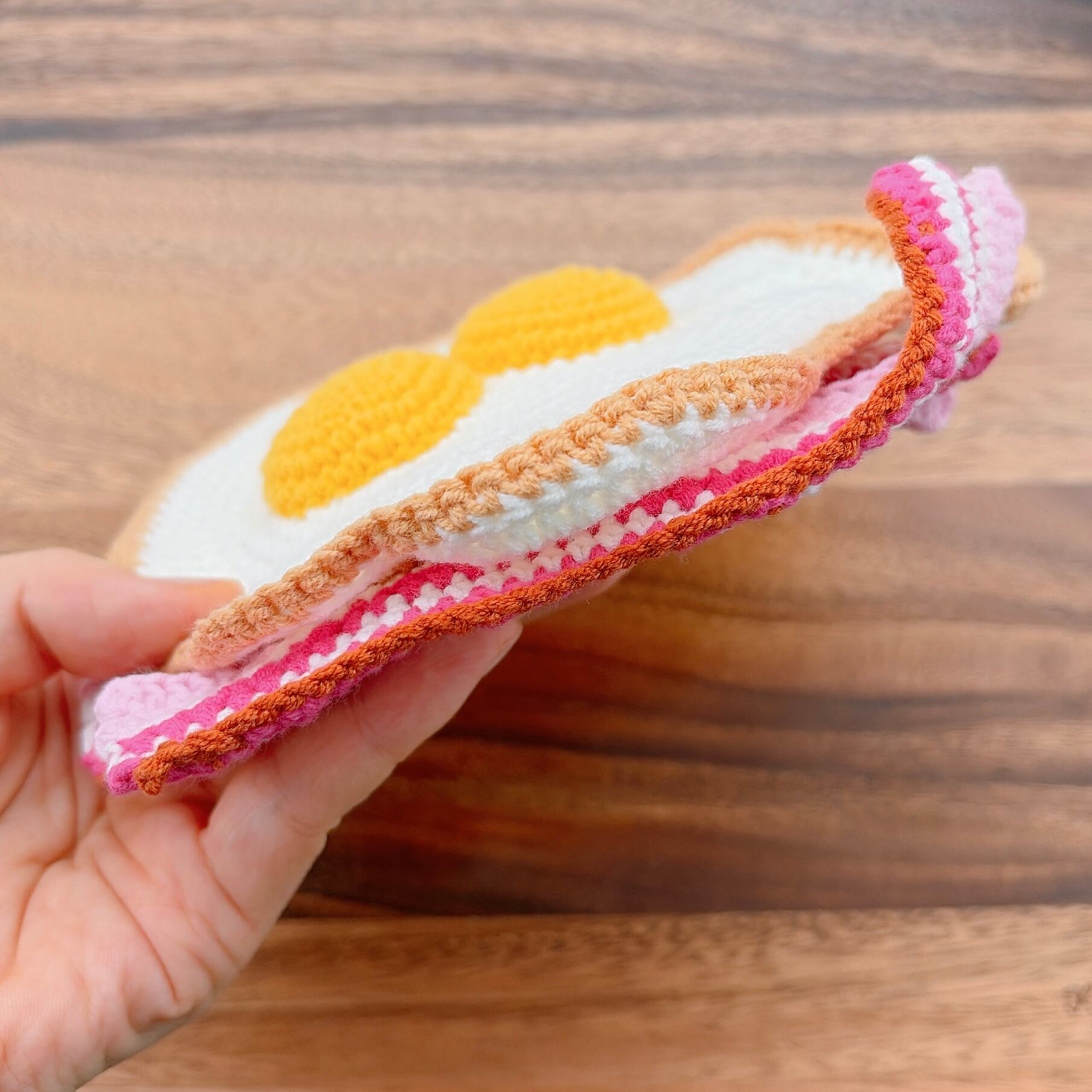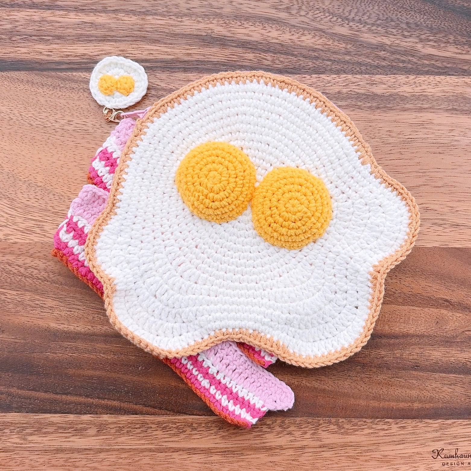 ふたご卵のベーコンエッグ・あみぐるみポーチ