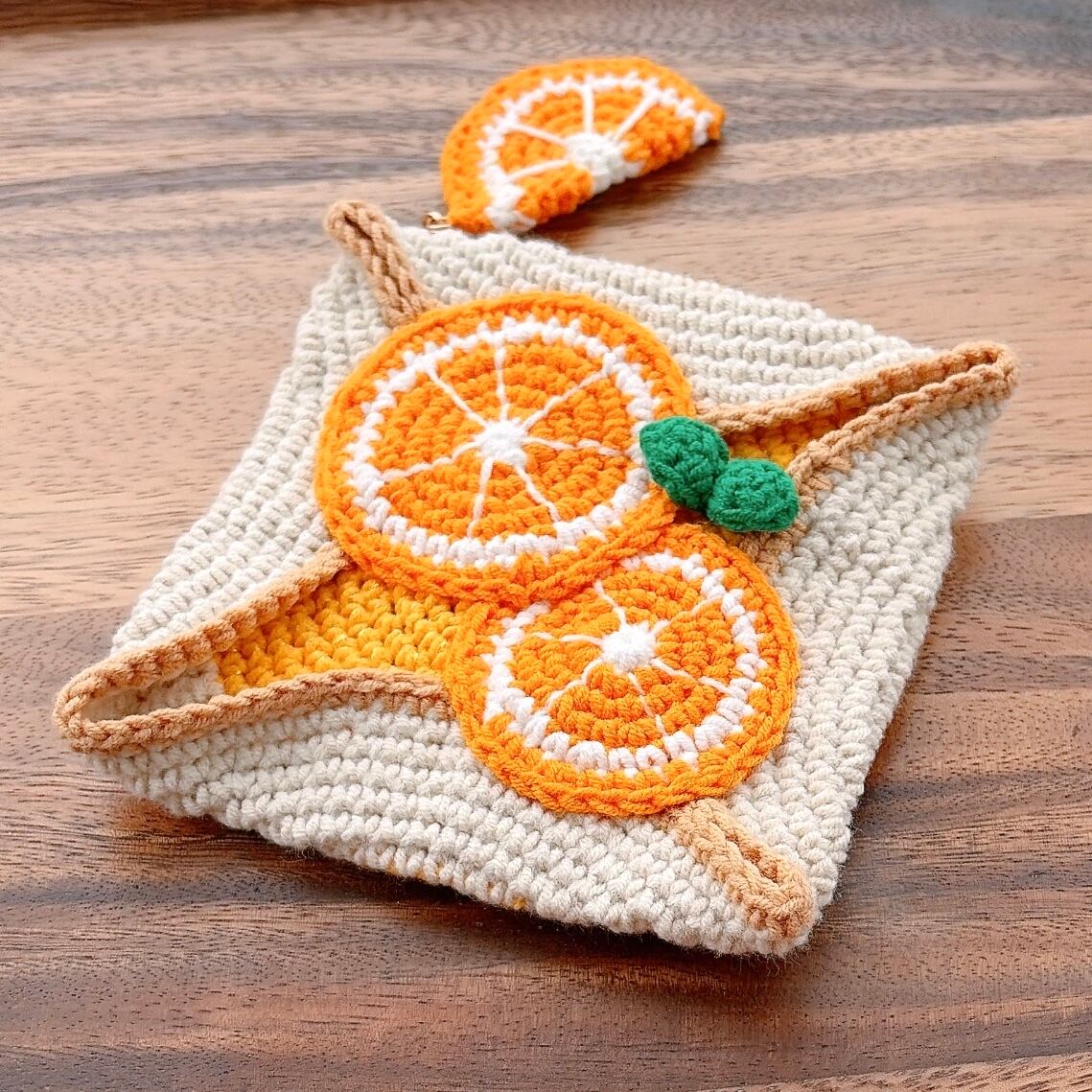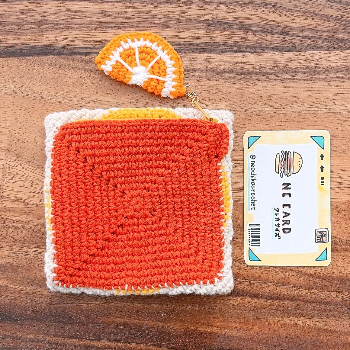 オレンジのガレット(クレープシュゼット)のあみぐるみをポーチにしました!