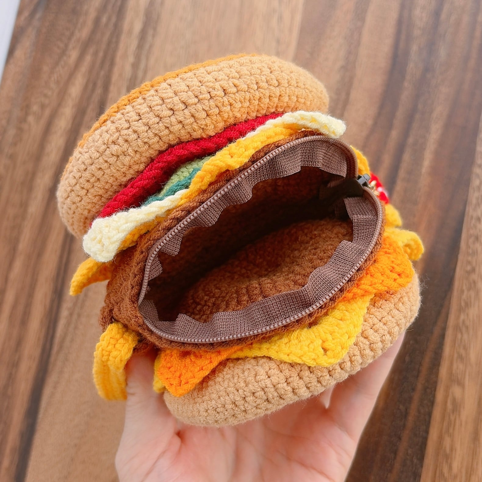 ハンバーガーのあみぐるみをポーチにしました!